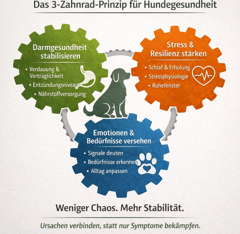 Wir bauen Stabilität über drei Ebenen, damit Juckreiz, Ohren und Darm endlich aus der Dauerschleife rauskommen.